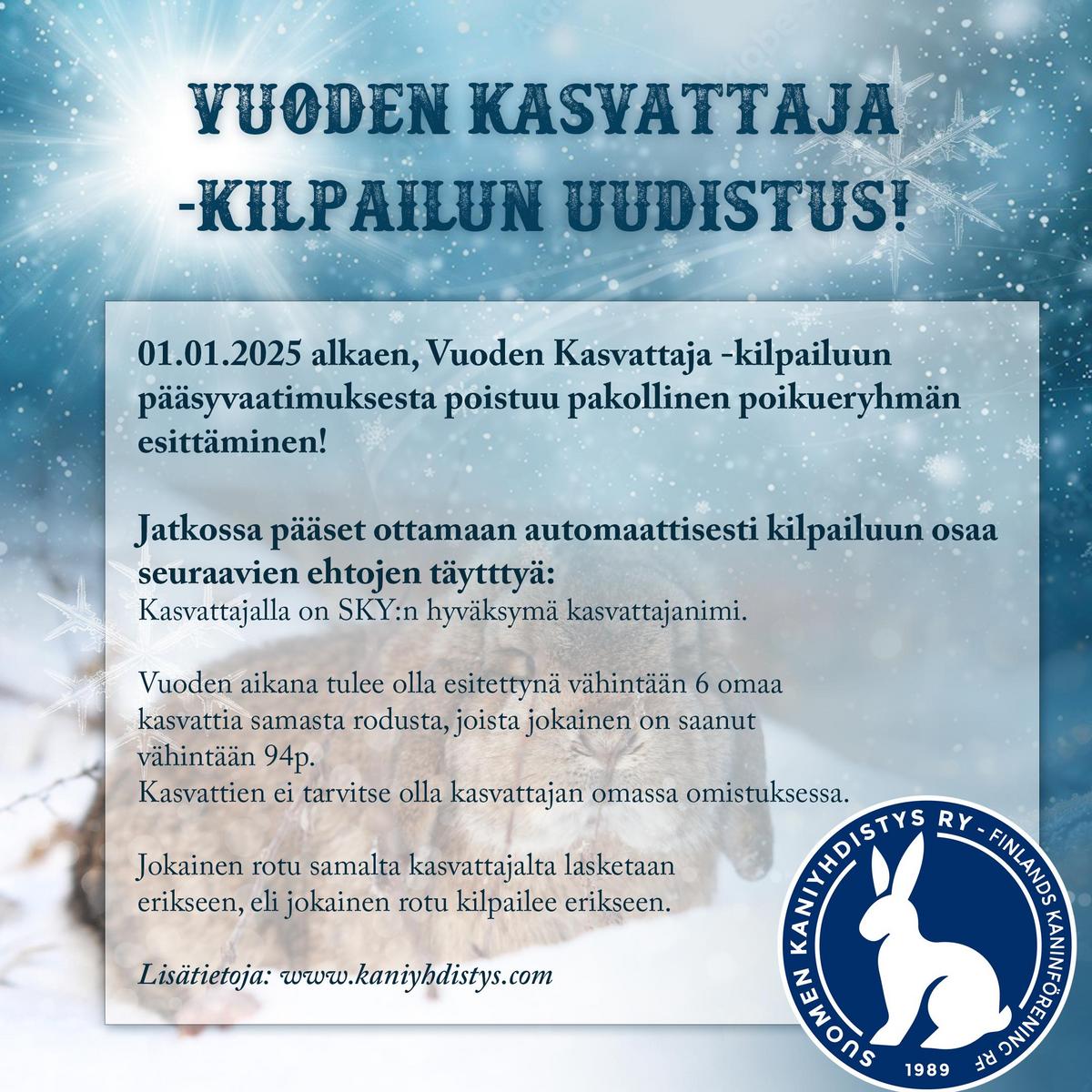 Kaikki kasvattajat ovat suorittaneet SKY ry:n kasvattajakurssin. Pysyäkseen kasvattajalistalla on vuosittain rekisteröitävä yksi (1) kasvatti SKY Ry:n kantakirjaan ja sen lisäksi kasvattajan on oltava Suomen Kaniyhdistys Ry:n jäsen.
